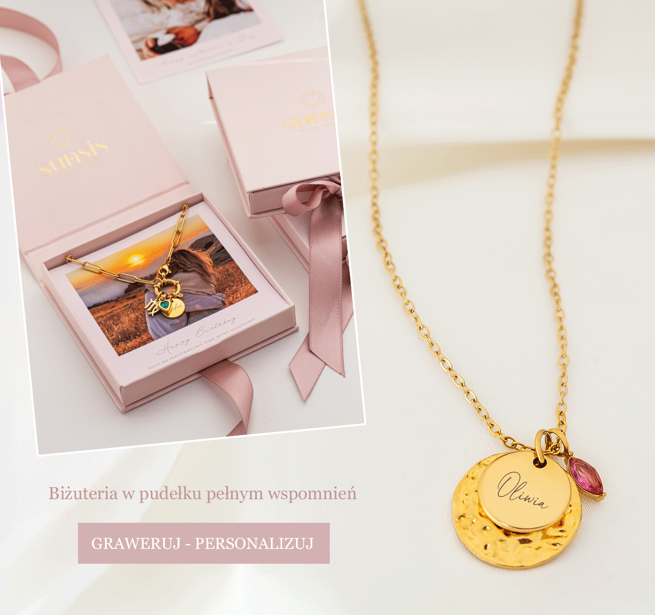 Każda nasza biżuteria jest jak promień słońca – pełna ciepła, blasku i energii, którą chcemy dzielić z innymi. Jest w pełni personalizowana – z grawerem, dedykacją, a nawet zdjęciem, które przypomina Ci o wyjątkowych chwilach lub kojarzy się z osobą, której chcesz podarować prezent.