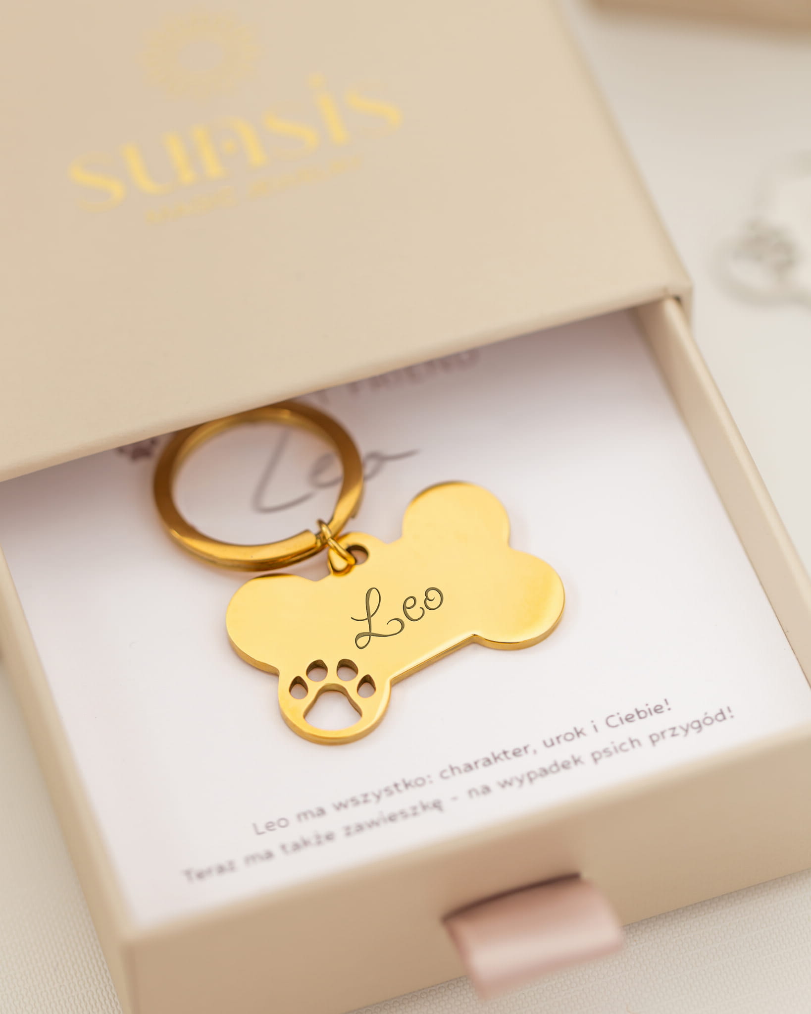 Adresówka dla pieska srebrna kość cute + pudełko z dedykacją