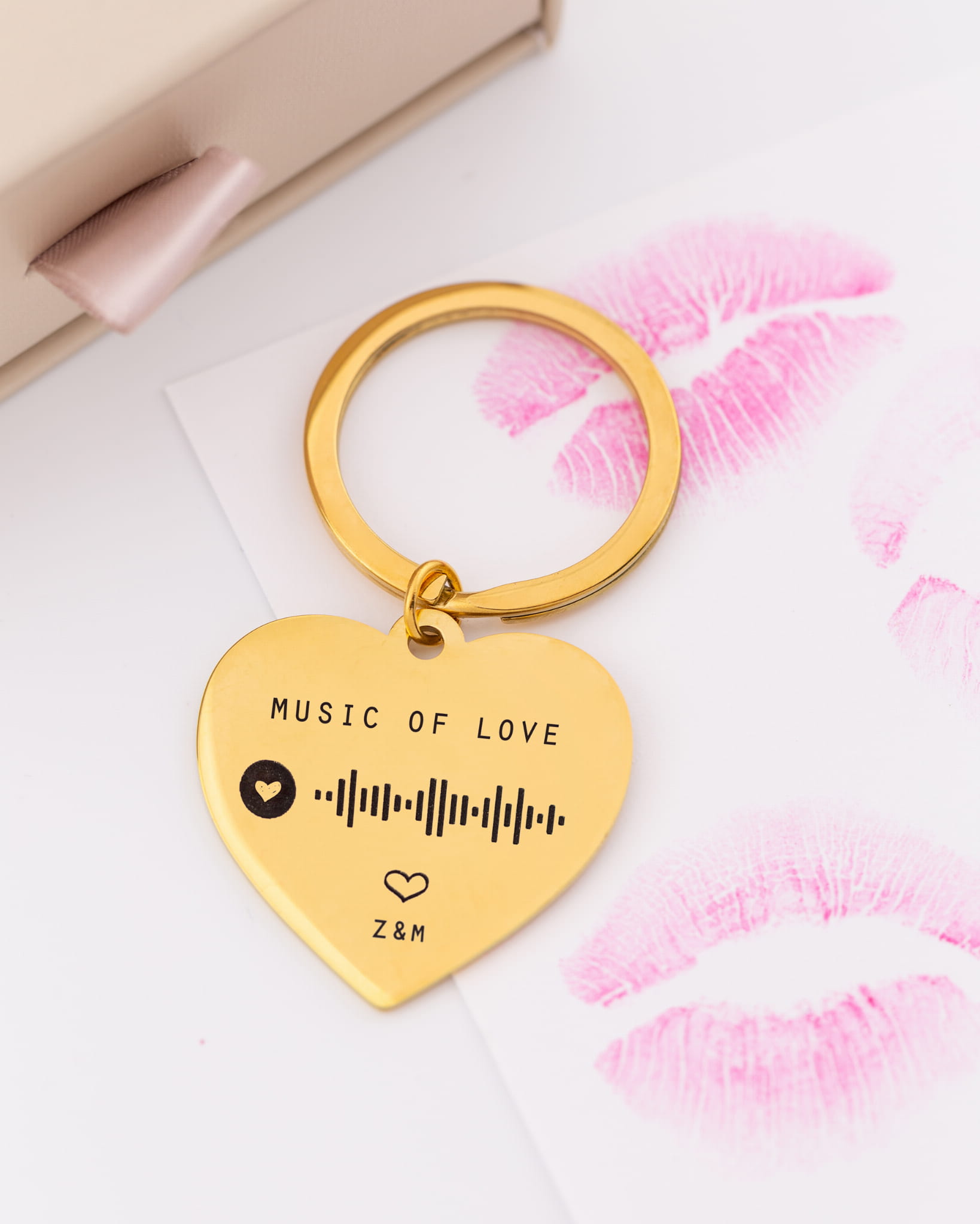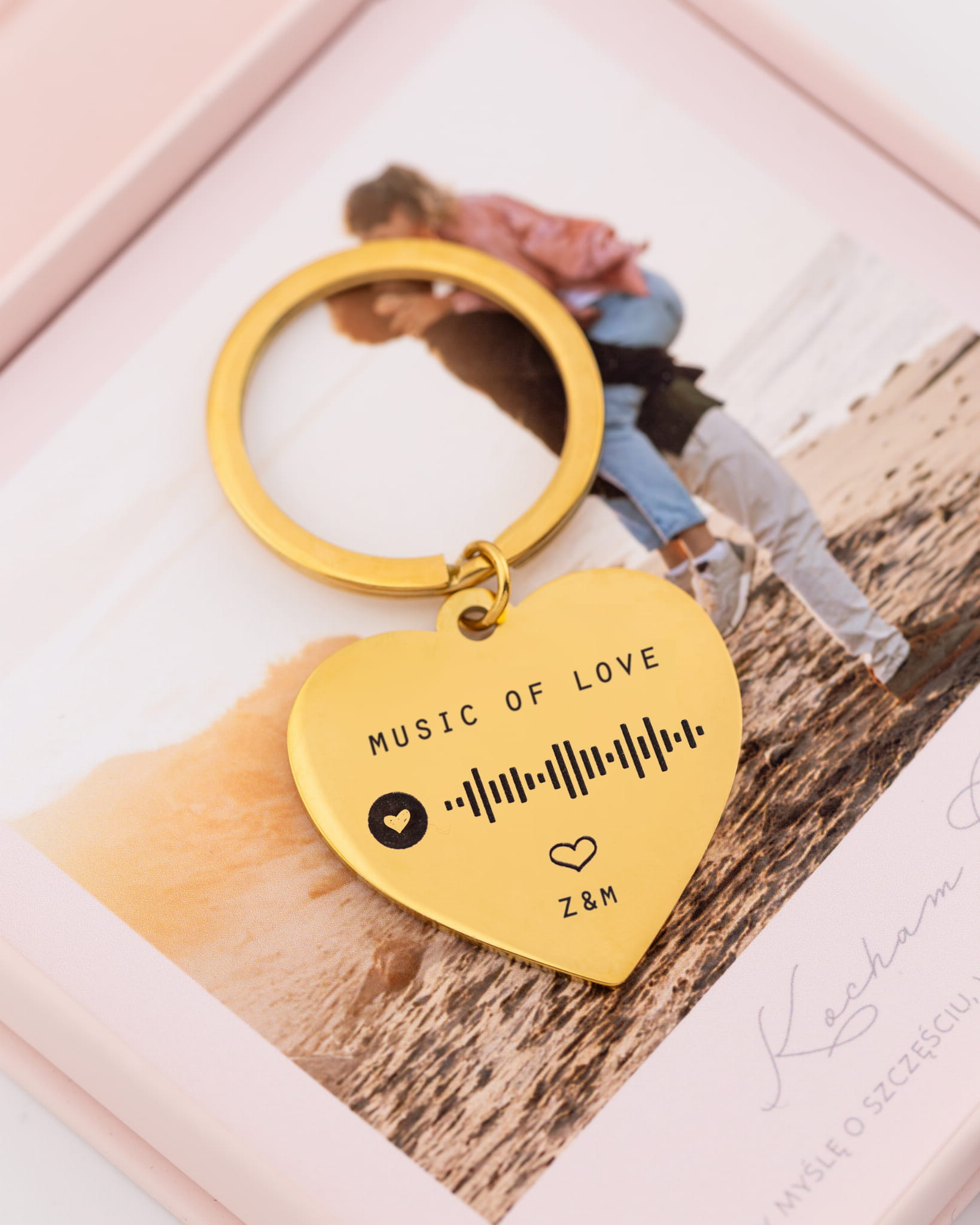 Brelok z grawerem kodu muzycznego do waszej piosenki lub playlisty – w ekskluzywnym pudełku z Waszym zdjęciem