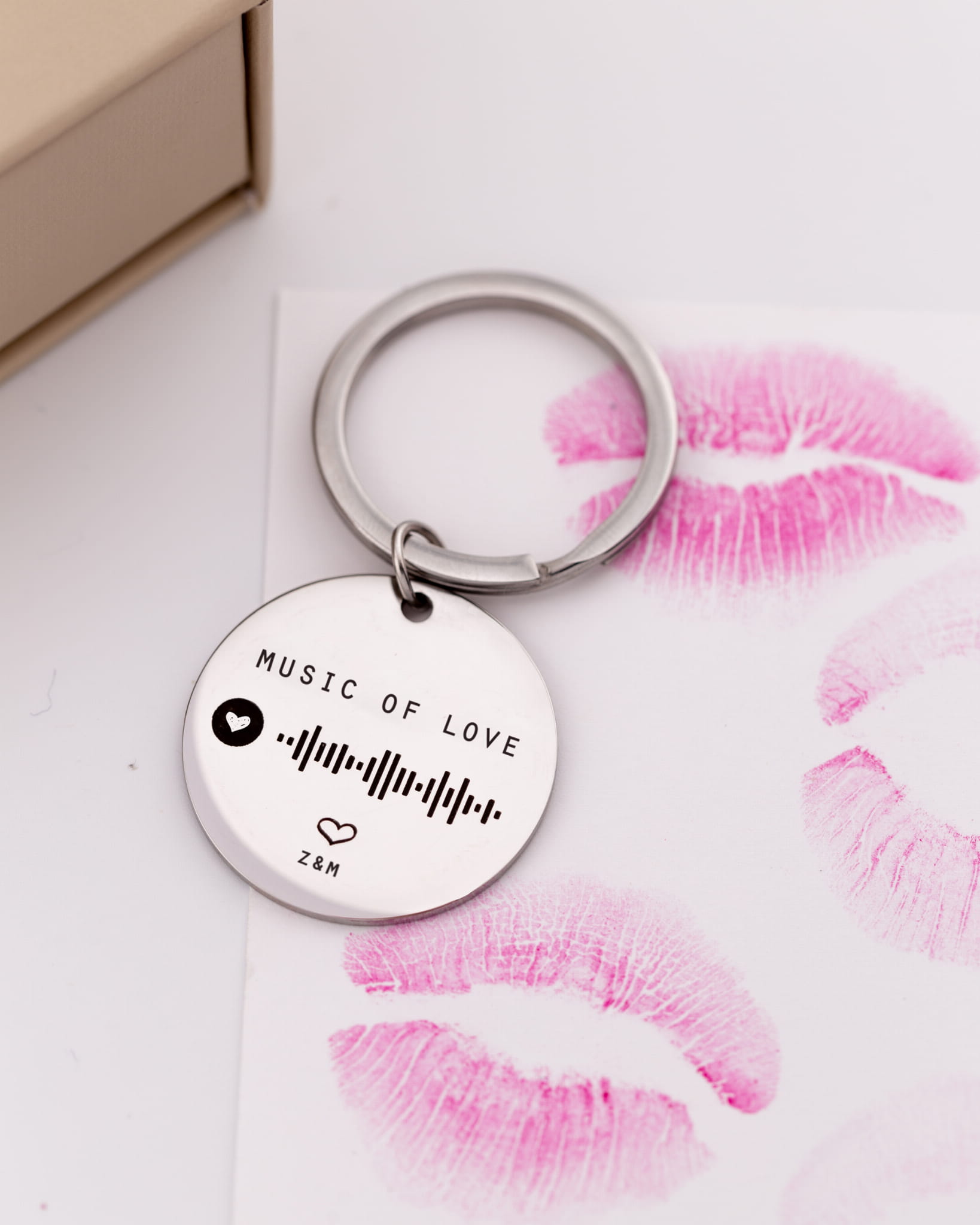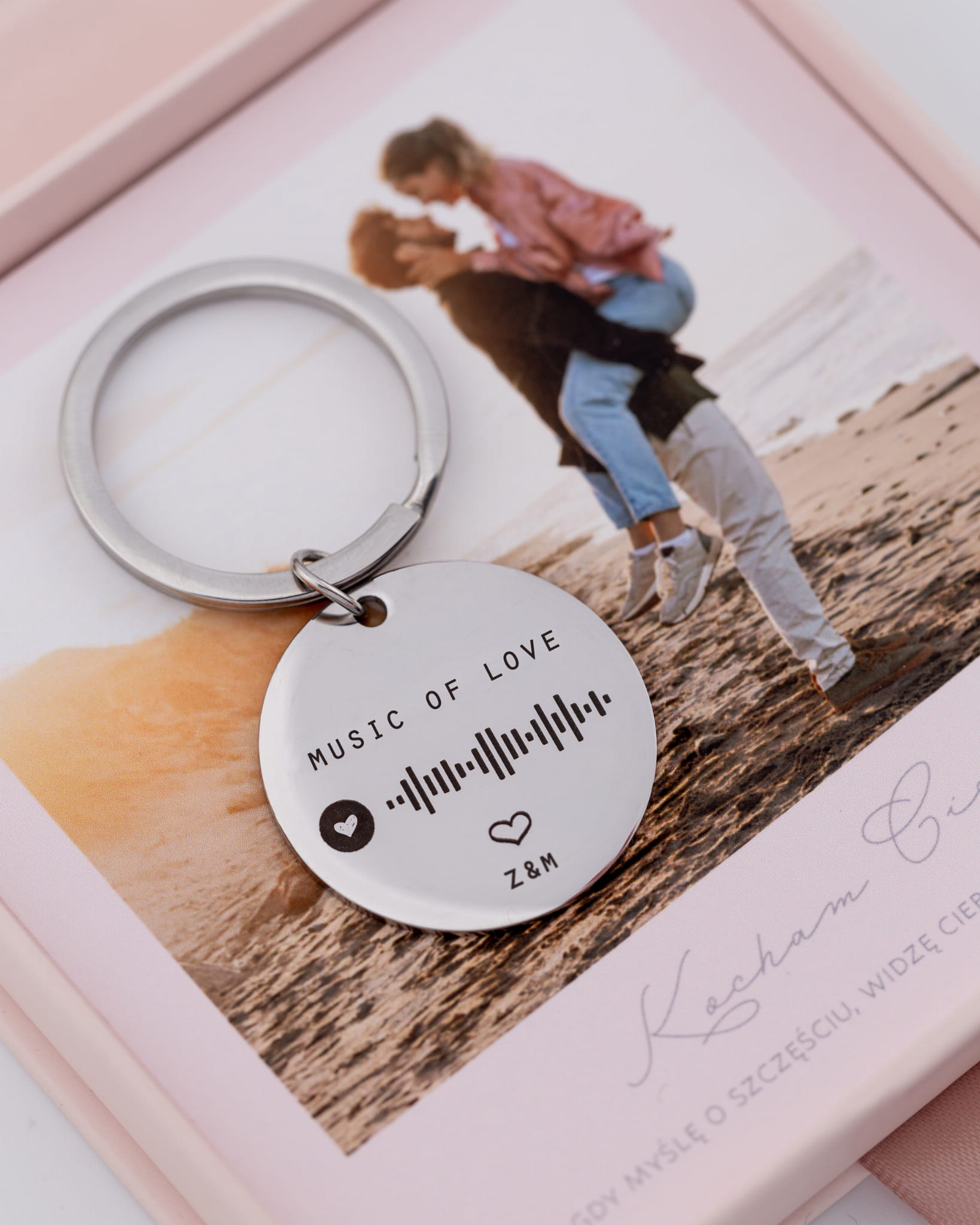 Brelok z grawerem kodu muzycznego do waszej piosenki lub playlisty – w ekskluzywnym pudełku z Waszym zdjęciem