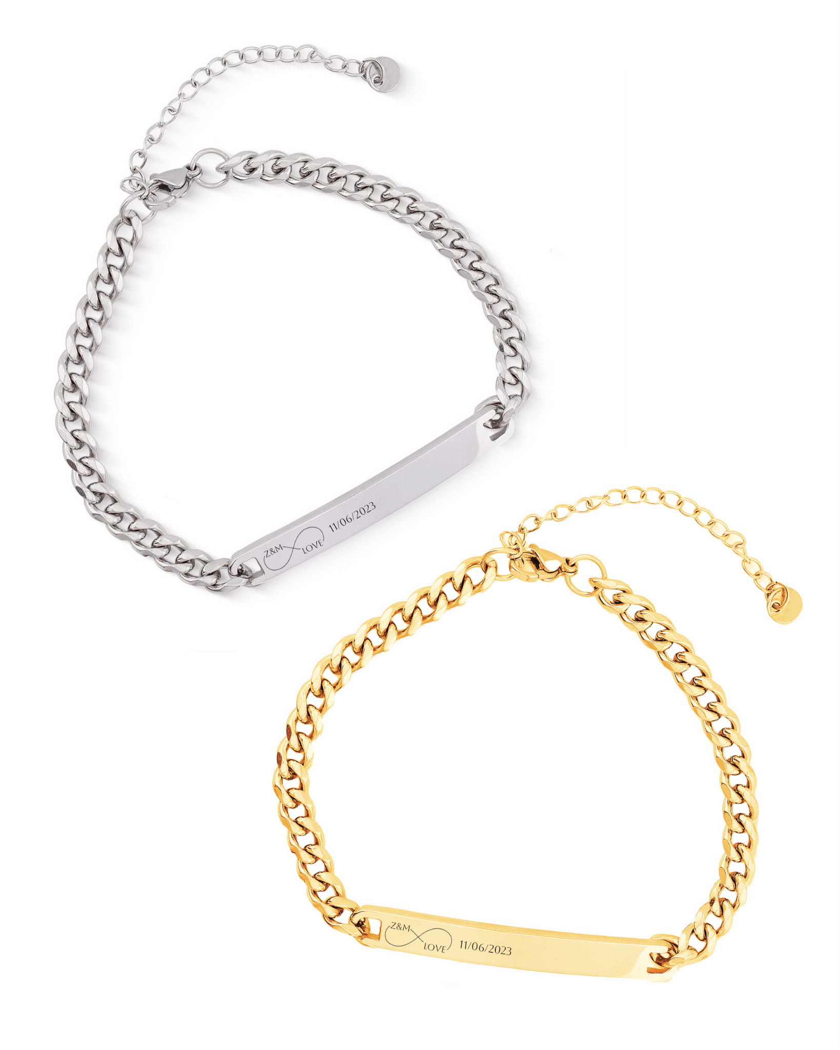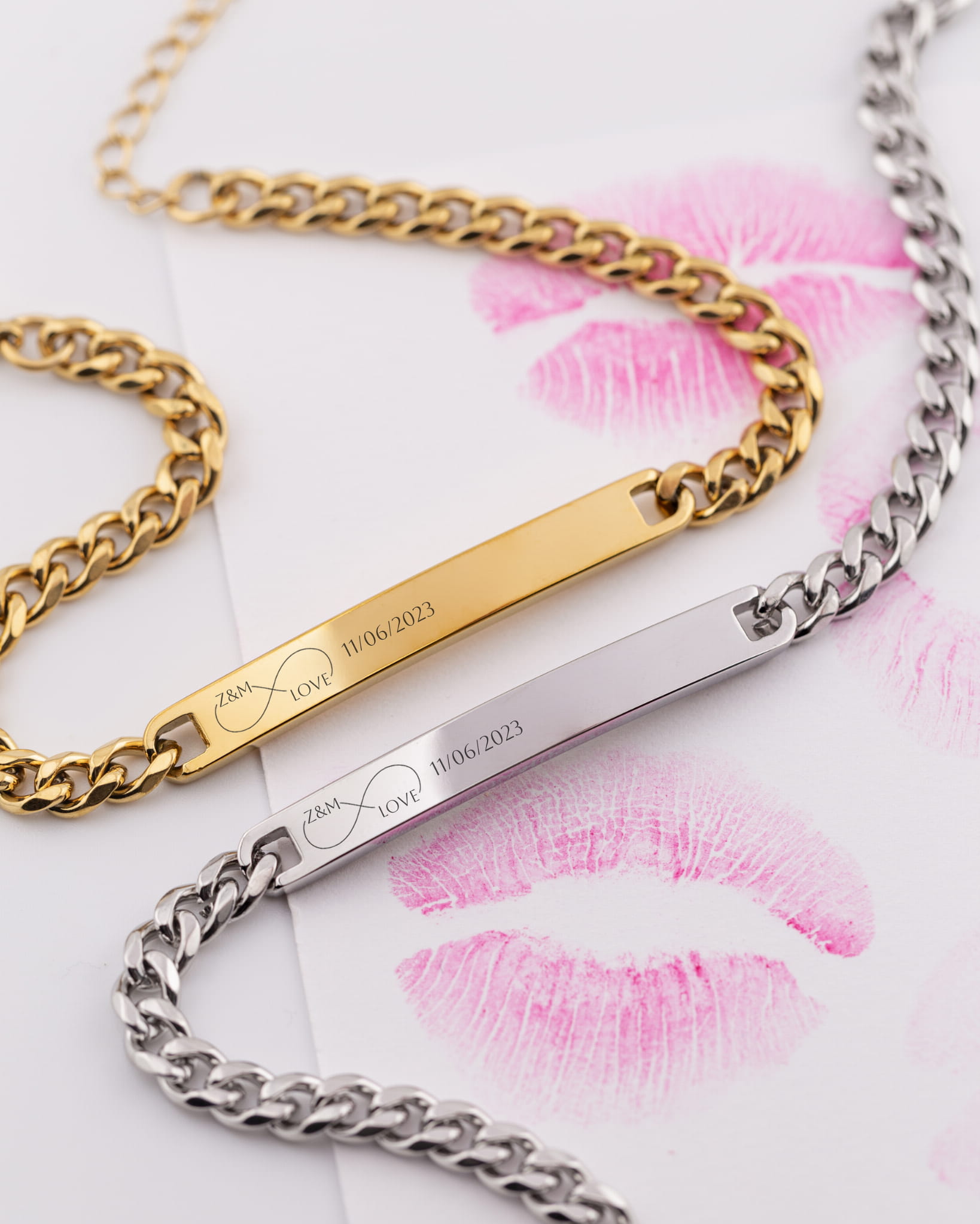 Komplet bransoletek (złota i srebrna) dla niej i dla niego z grawerem + pudełko z dedykacją