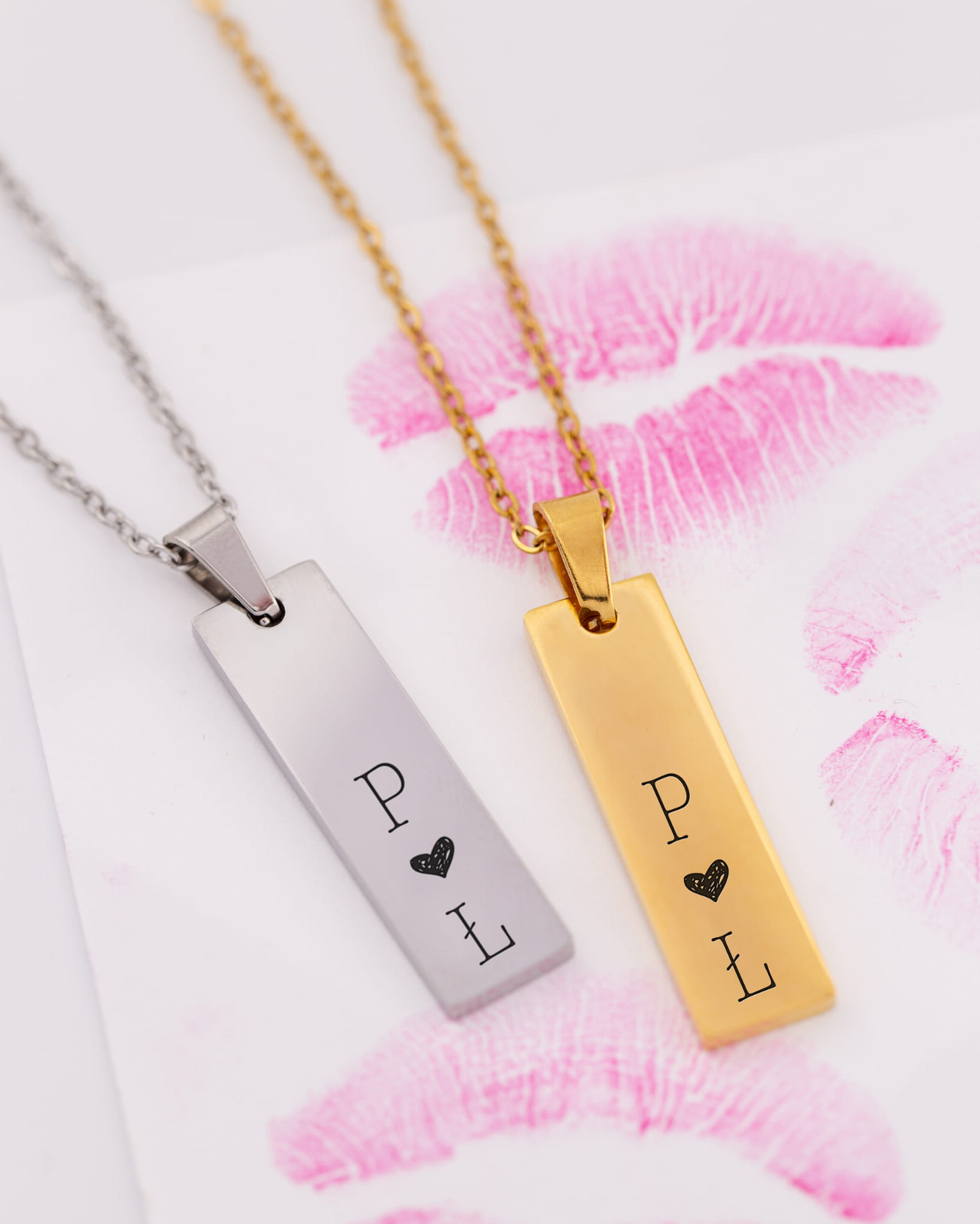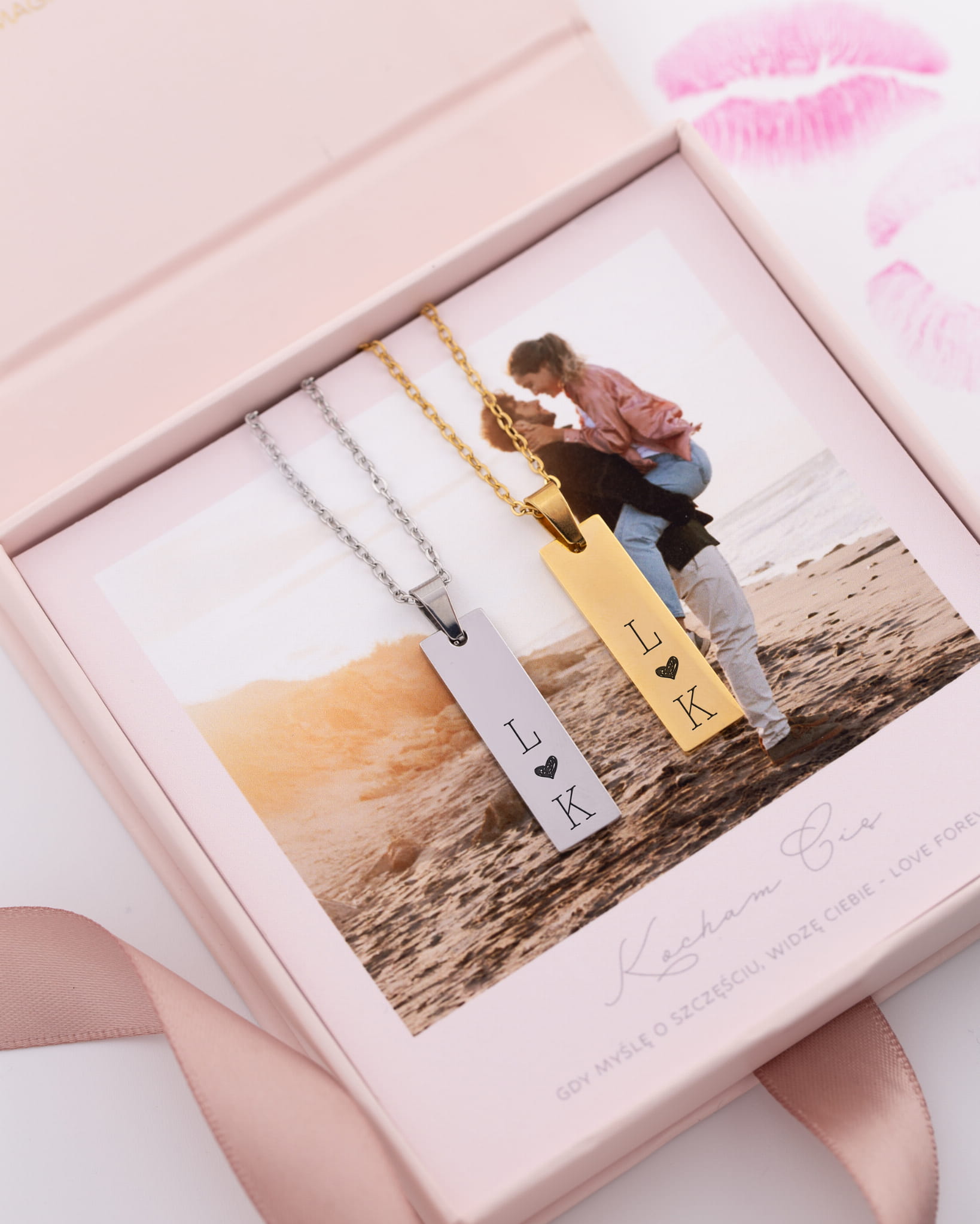Komplet dwóch naszyjników dla pary z dwustronnym grawerem w pudełku ze zdjęciem