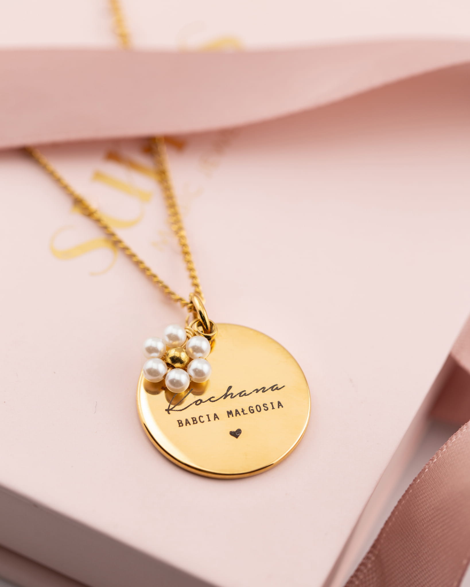 Naszyjnik z dwustronnym grawerem dla Babci – w ekskluzywnym pudełku z dedykacją