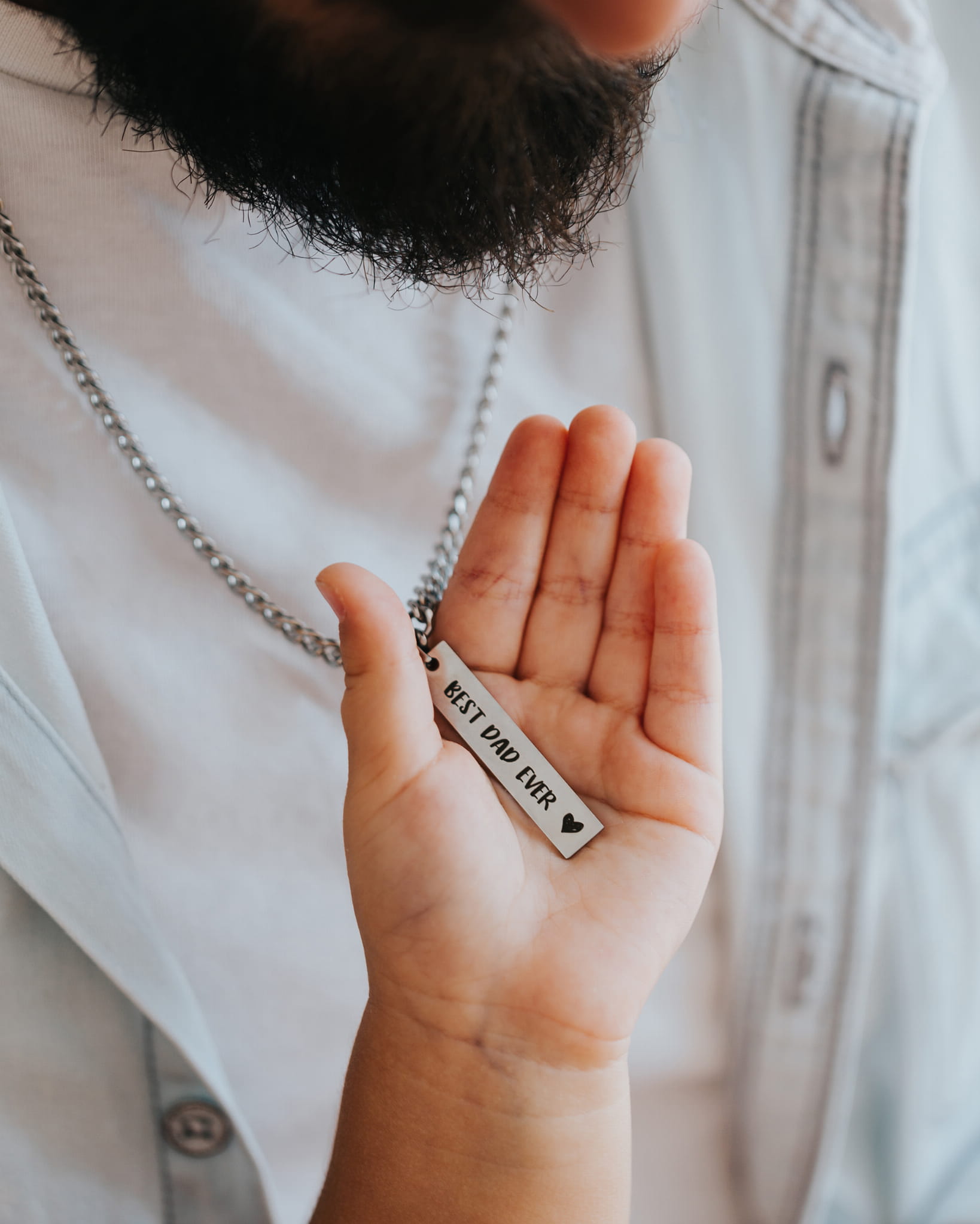 Podkreśl, jak wyjątkowy jest Twój tata — podaruj mu naszyjnik „Best Dad Ever” w eleganckim pudełku z możliwością umieszczenia zdjęcia. To nie tylko stylowy dodatek, ale przede wszystkim wzruszający, personalizowany prezent, który powie „Kocham Cię, tato” w najpiękniejszy sposób.
