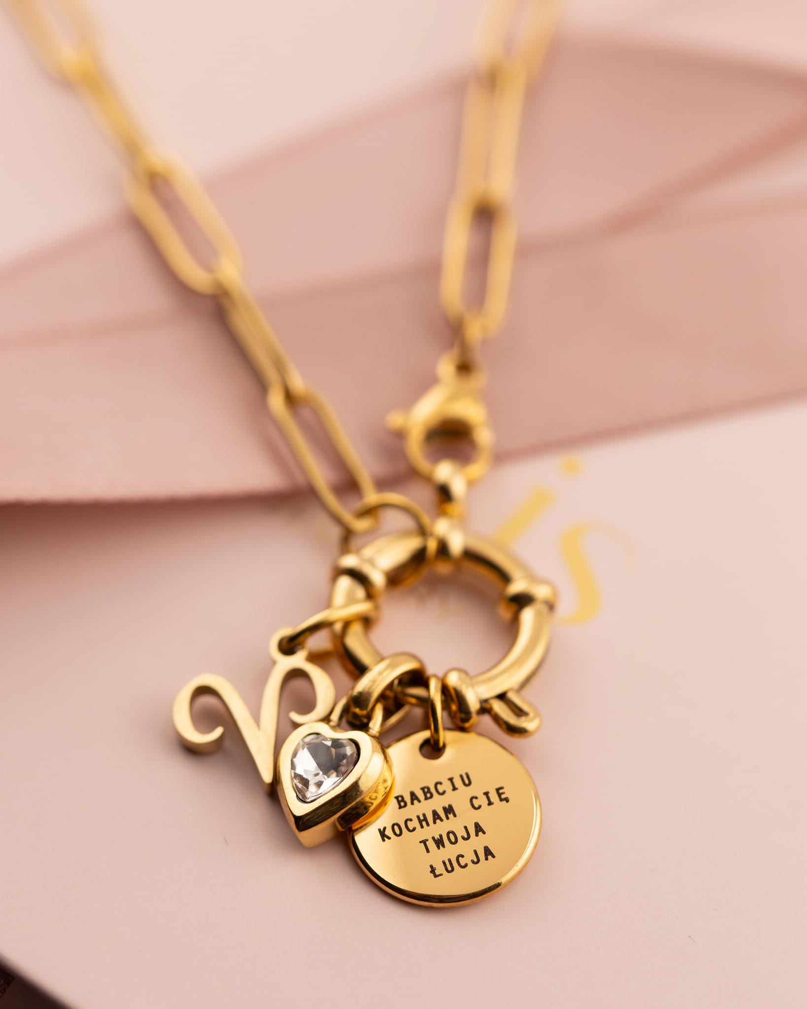 Naszyjnik pozłacany pancerka Twój grawer dla babci - znak zodiaku & kamień urodzeniowy + pudełko ze zdjęciem