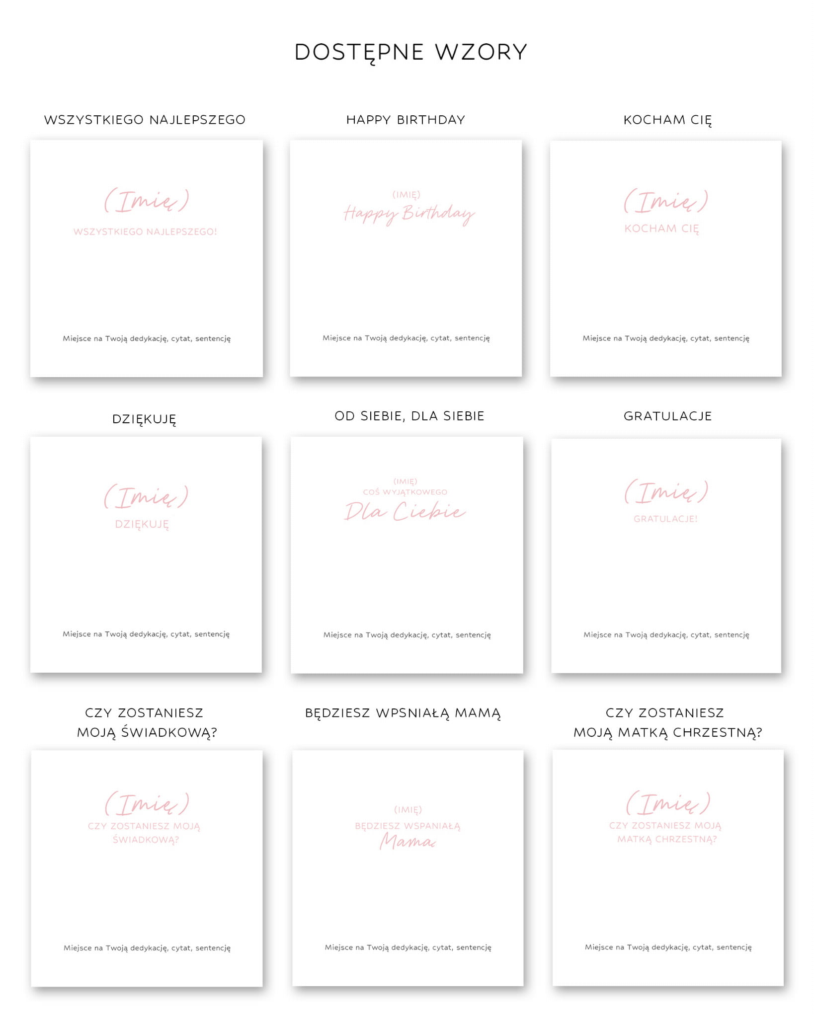 - pierwsza linijka pismo odręczne możesz wpisać cokolwiek tylko chcesz np. Cudowna, Kochana, Kocham Cię, Wspaniała itp.