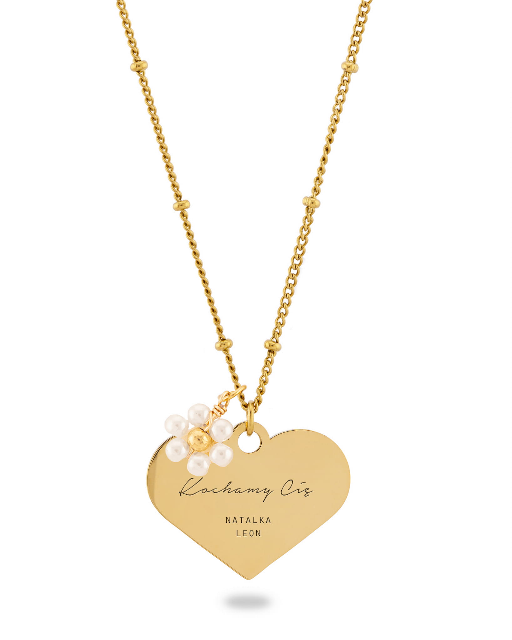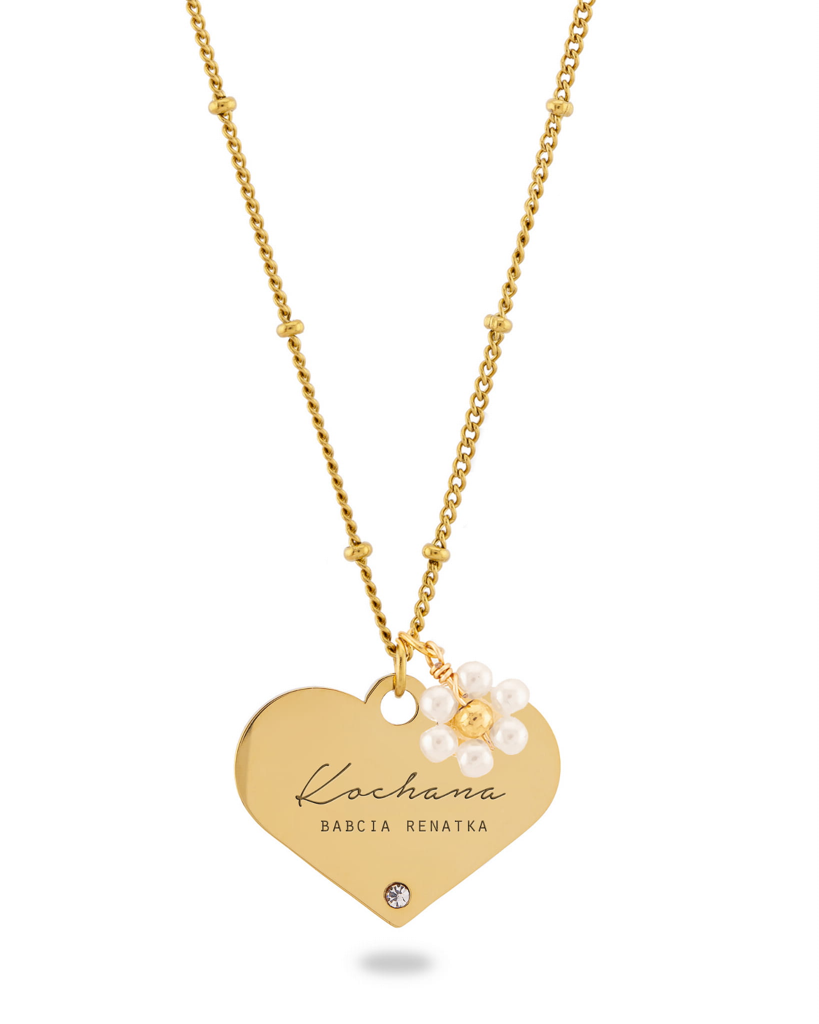 Naszyjnik pozłacany z grawerem dwustronnym serduszko i stokrotka dla babci z pudełkiem z dedykacją