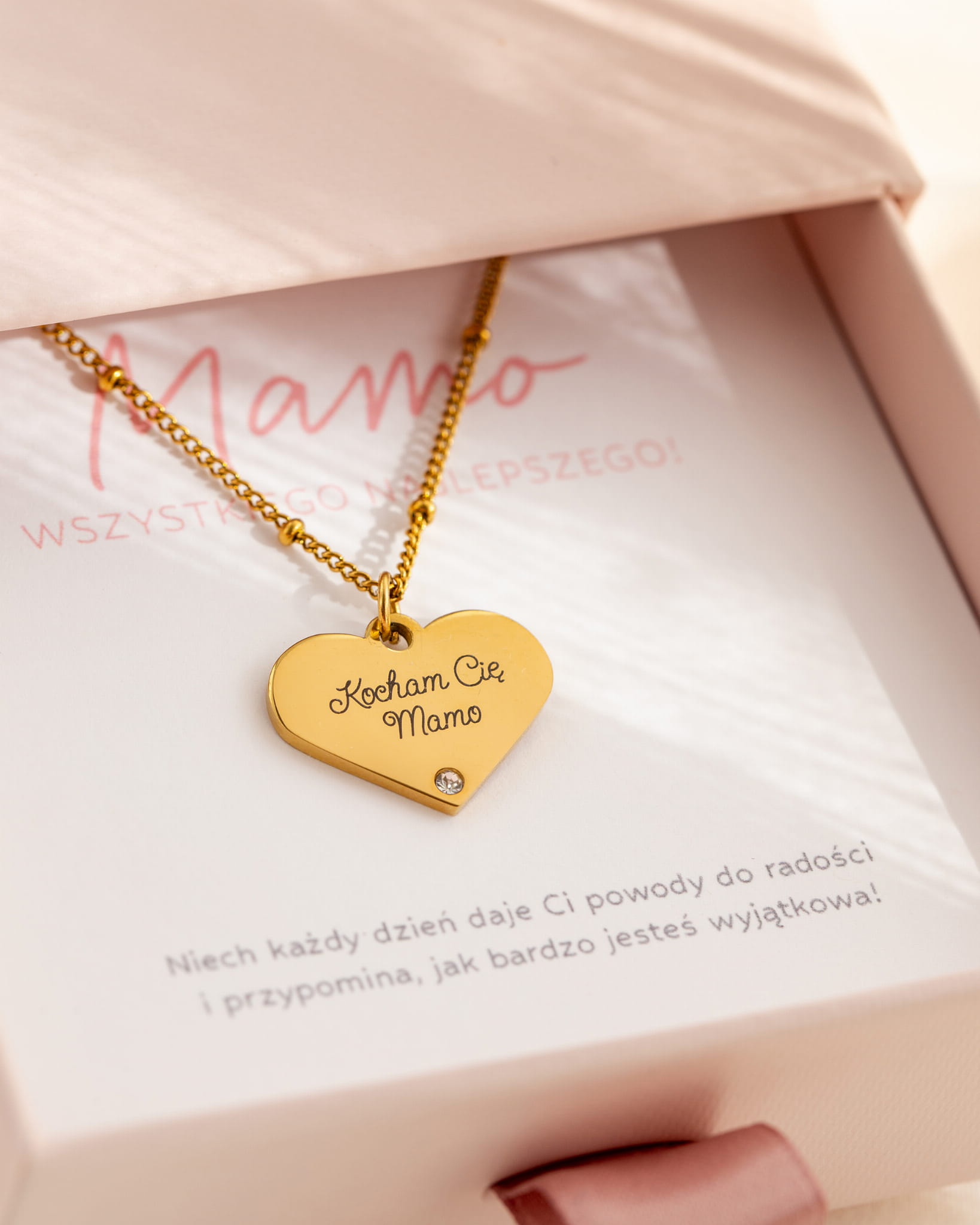 Naszyjnik srebrny serduszko z grawerem „Kocham Cię, Mamo” – w ekskluzywnym pudełku z dedykacją