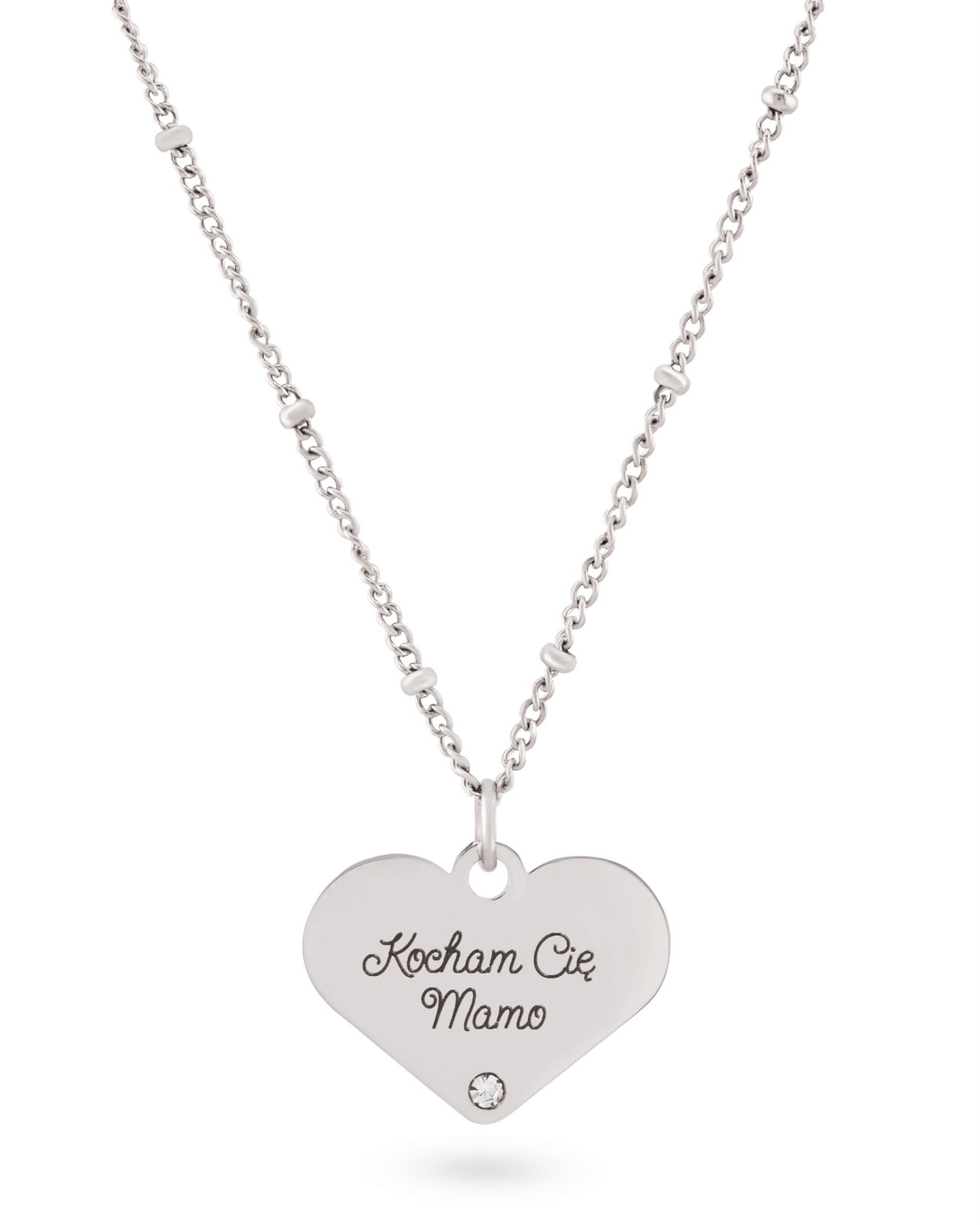 Naszyjnik srebrny serduszko z grawerem Kocham Cię Mamo + pudełko z dedykacją