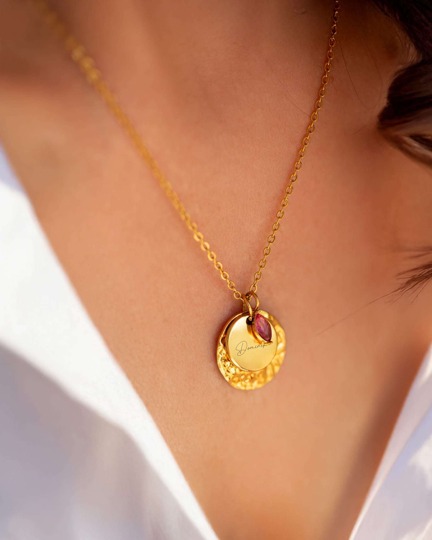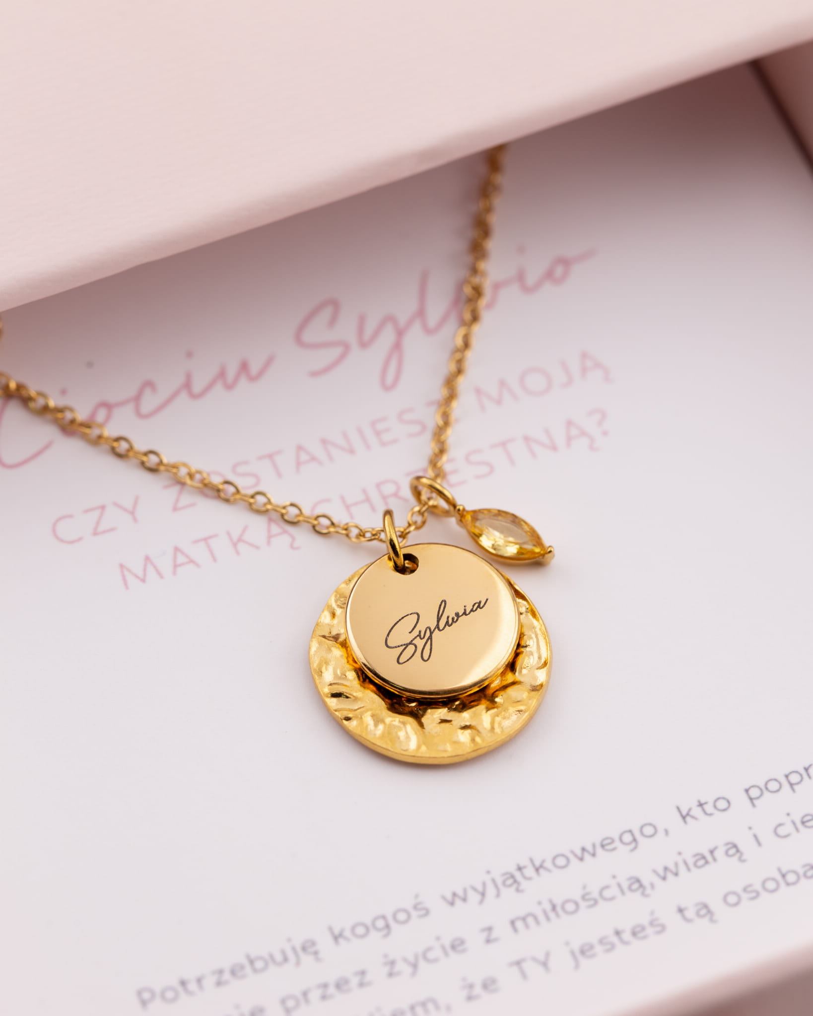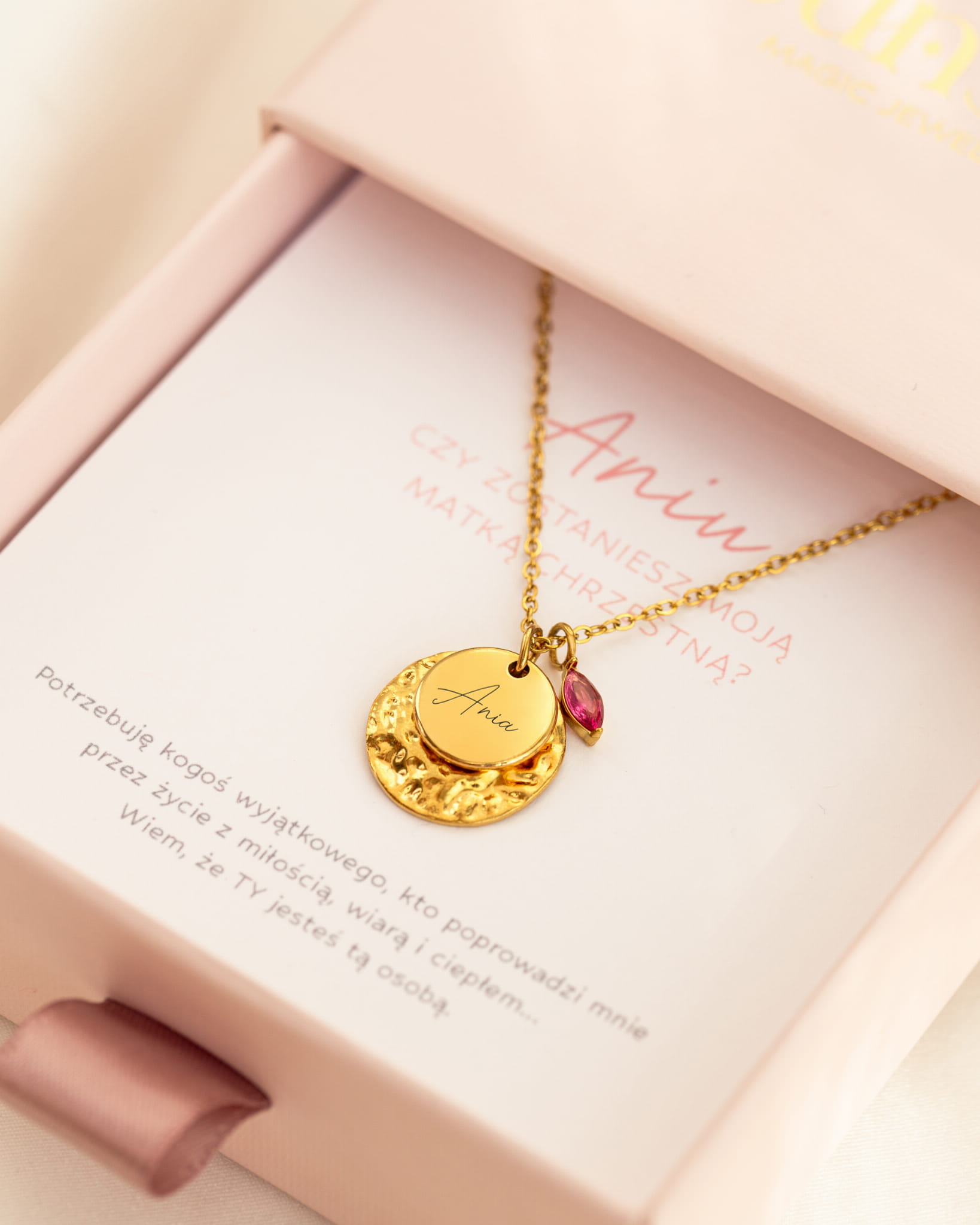 Naszyjnik z grawerem i kamyczkiem urodzeniowym + pudełko z dedykacją