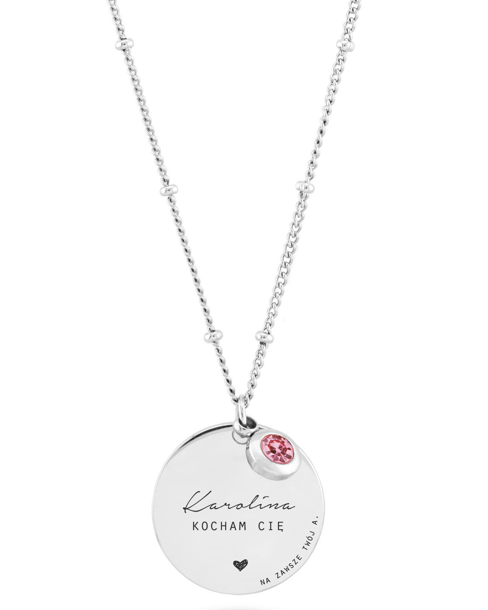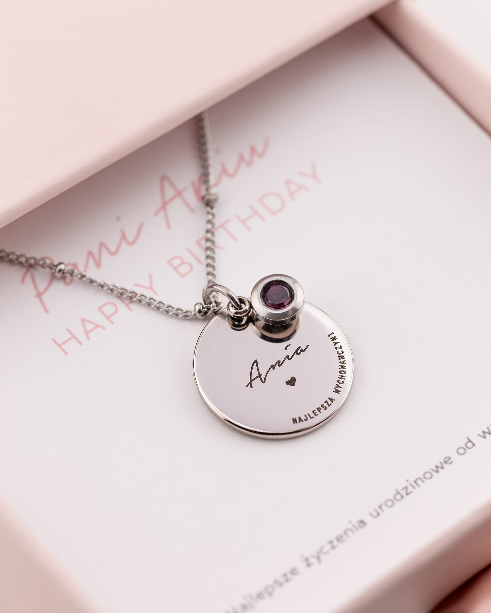 Naszyjnik z grawerem imię oraz twój tekst, cyrkonia + pudełko z dedykacją