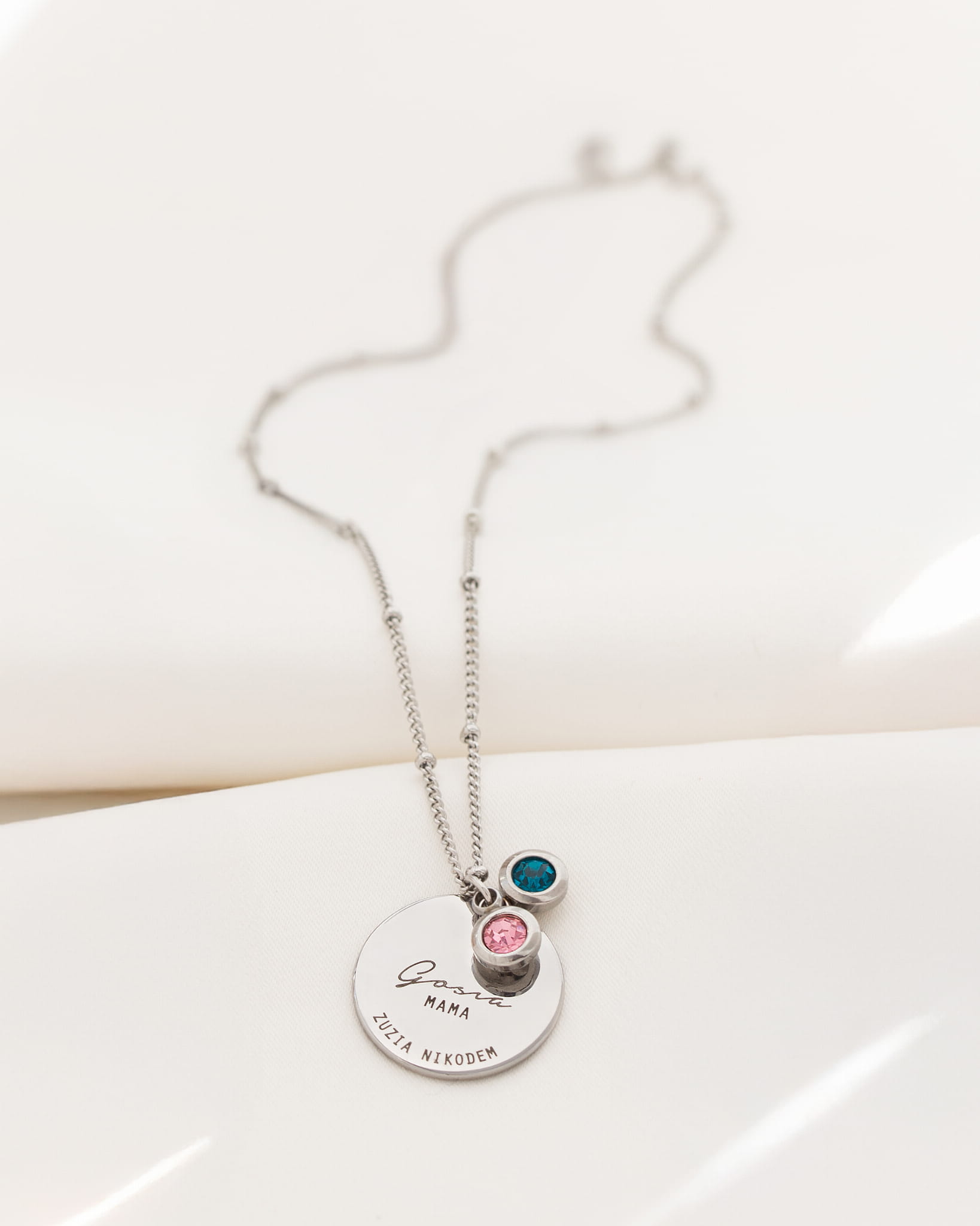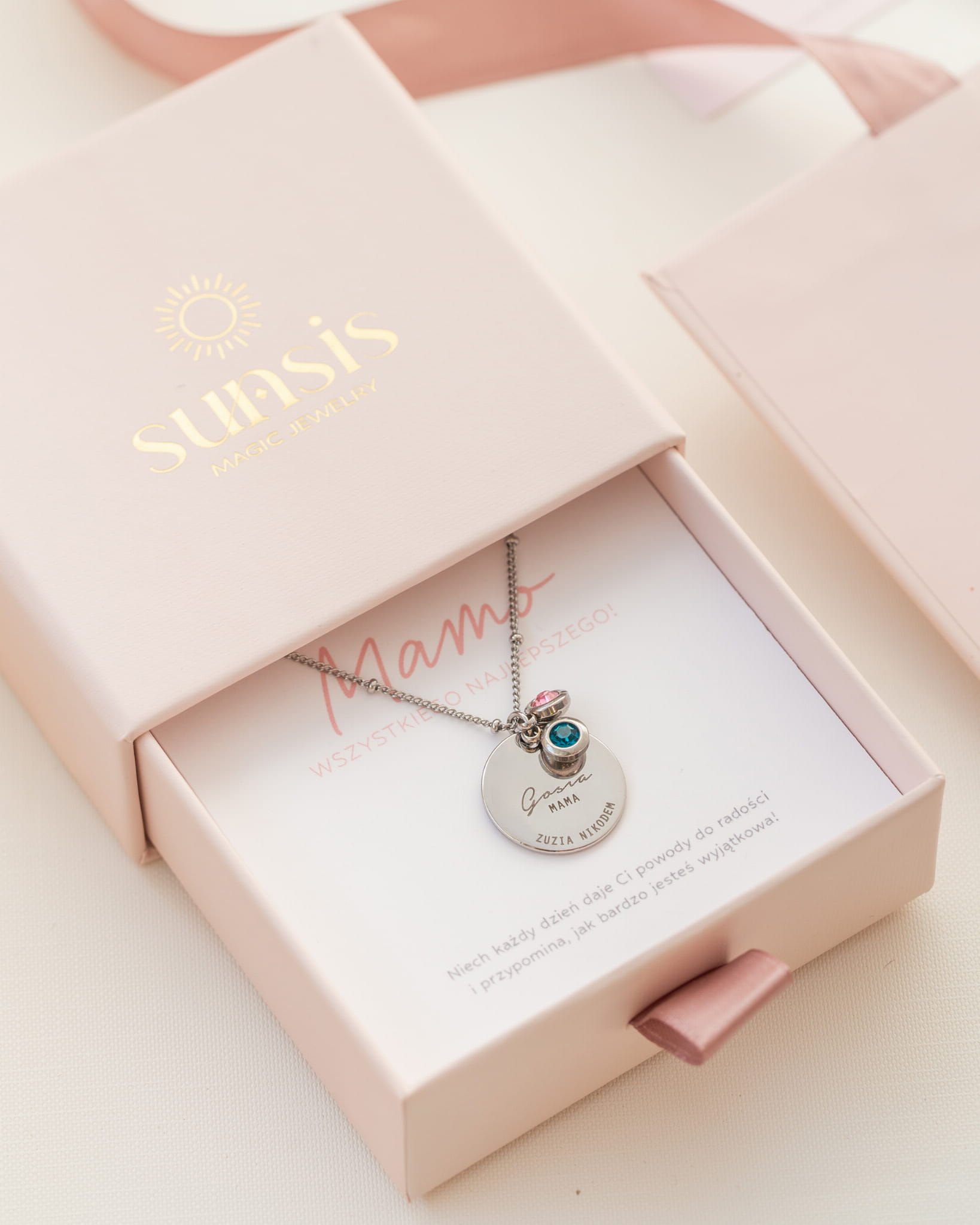 Naszyjnik z imieniem mamy i dzieci & cyrkonie + pudełko z dedykacją