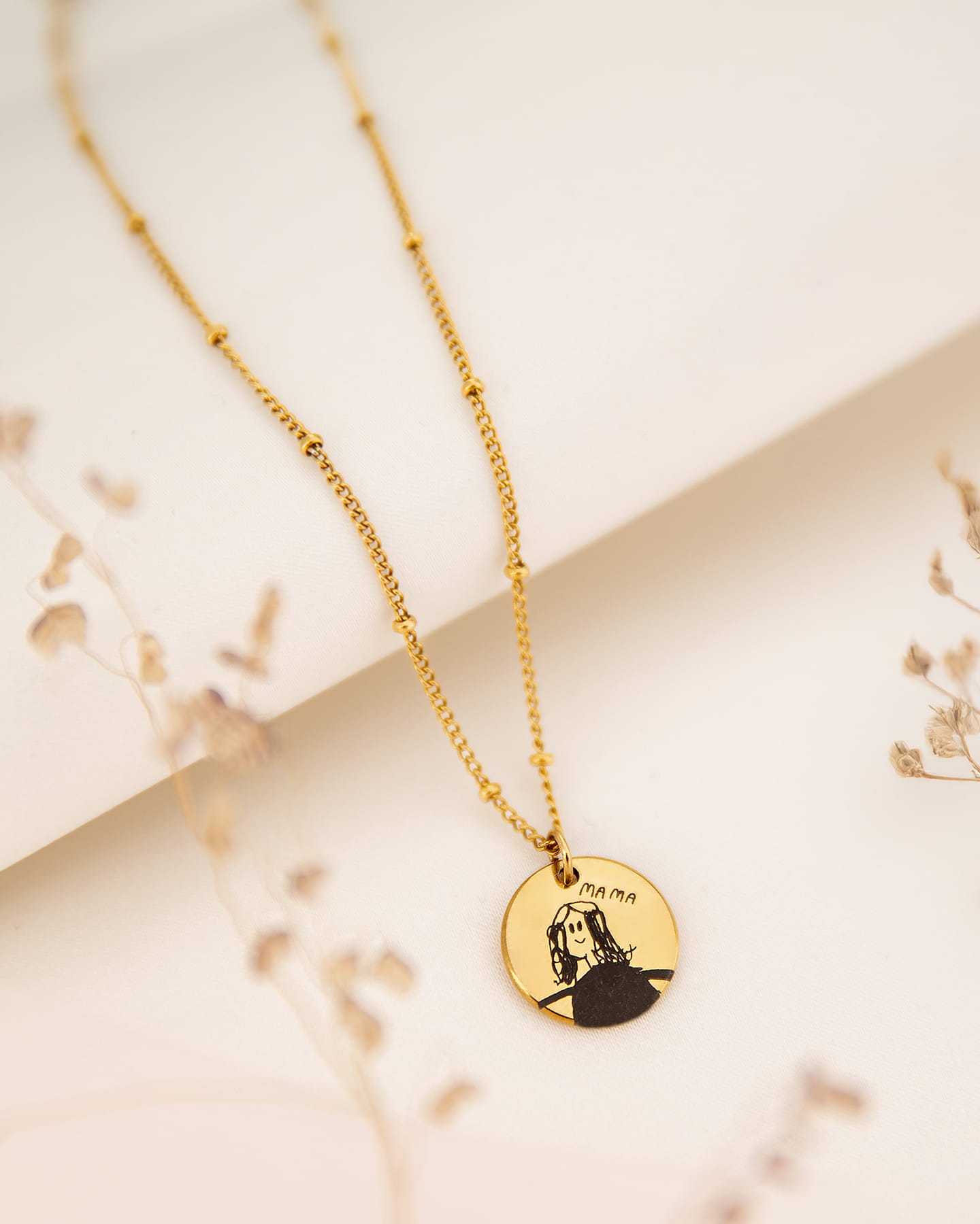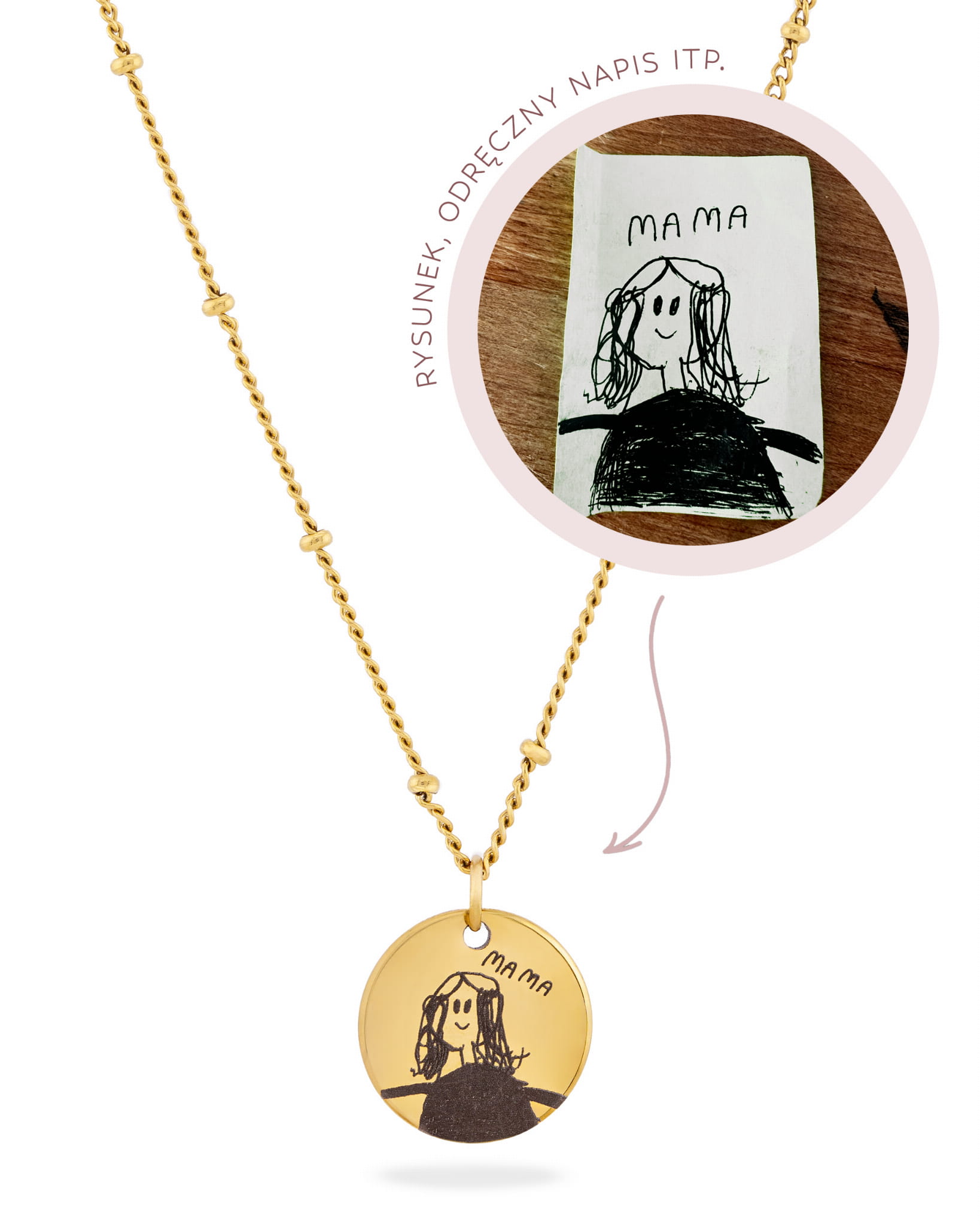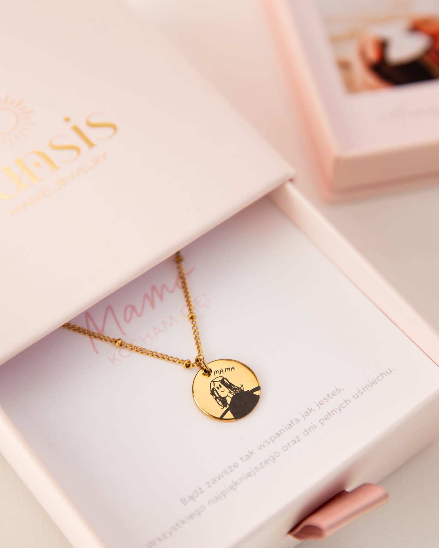 Naszyjnik z rysunkiem twojego dziecka + pudełko z dedykacją
