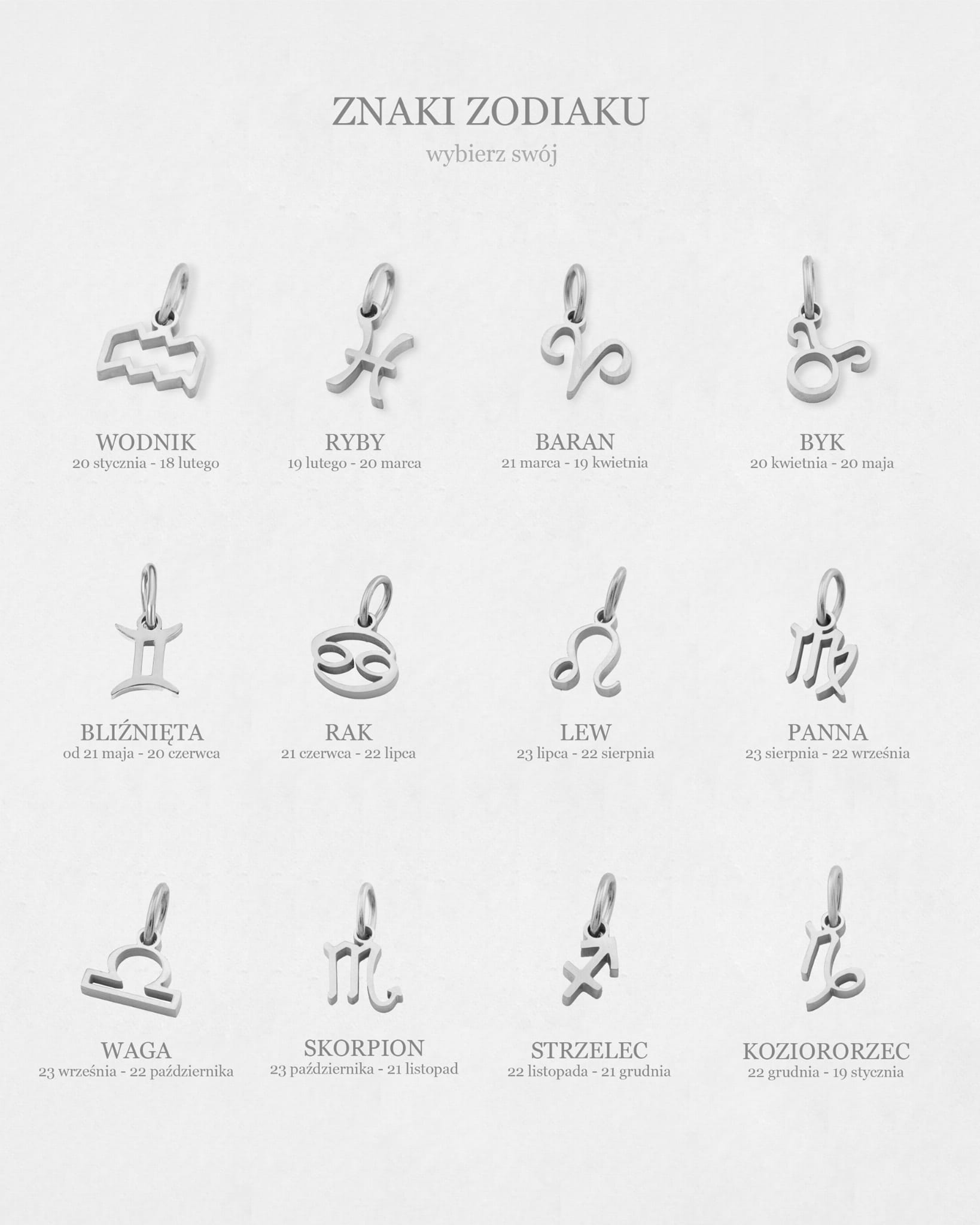 Naszyjnik zodiak SREBRNY z grawerem imienia + pudełko ze zdjęciem