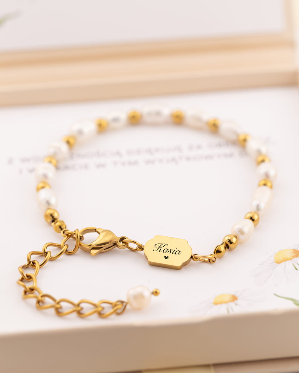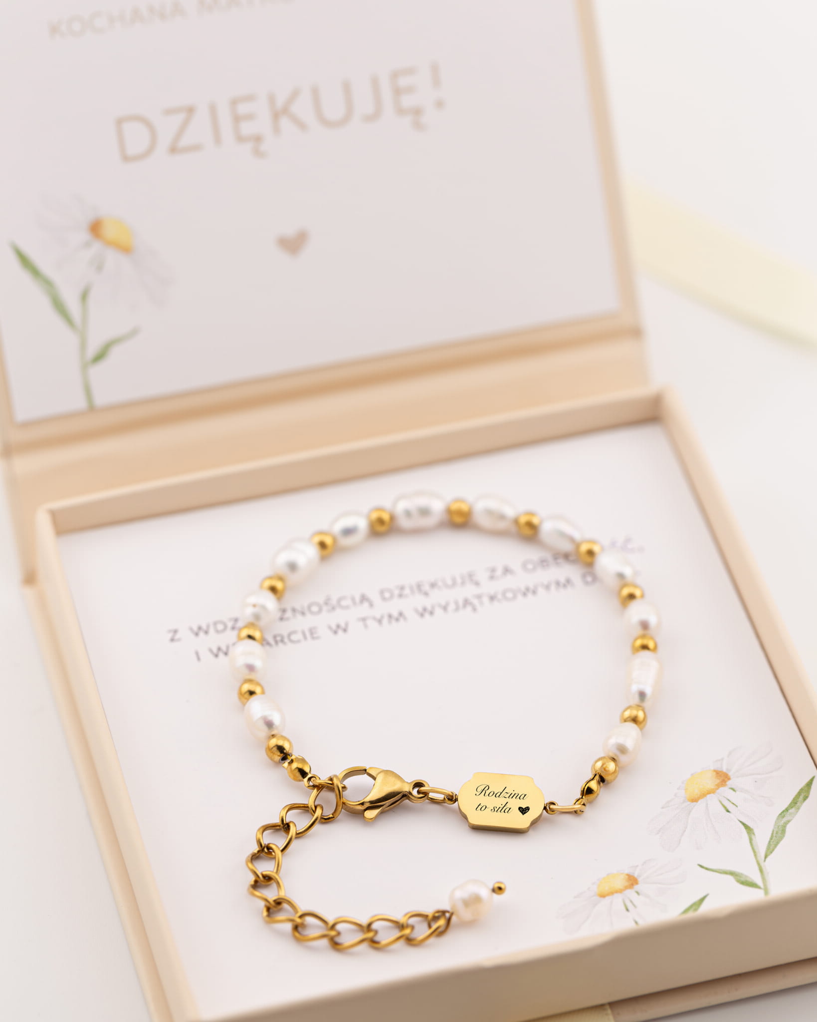 Ta wyjątkowa bransoletka wykonana z naturalnych pereł i pozłacanej zawieszki ze stali szlachetnej 316L , to nie tylko piękna ozdoba, ale przede wszystkim pełen emocji symbol miłości i wdzięczności.